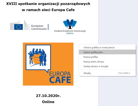Cieszymy się i zapraszamy na spotkanie online dot. aktualnego stanu Programu Prawa i Wartości też w j.polskim, 27.10.2020. To pierwsze z cyklu spotkań, które planujemy zrealizować do połowy 2021 dla Europa Cafe NGO, we współpracy z Komisją Europejską, w Brukseli.
