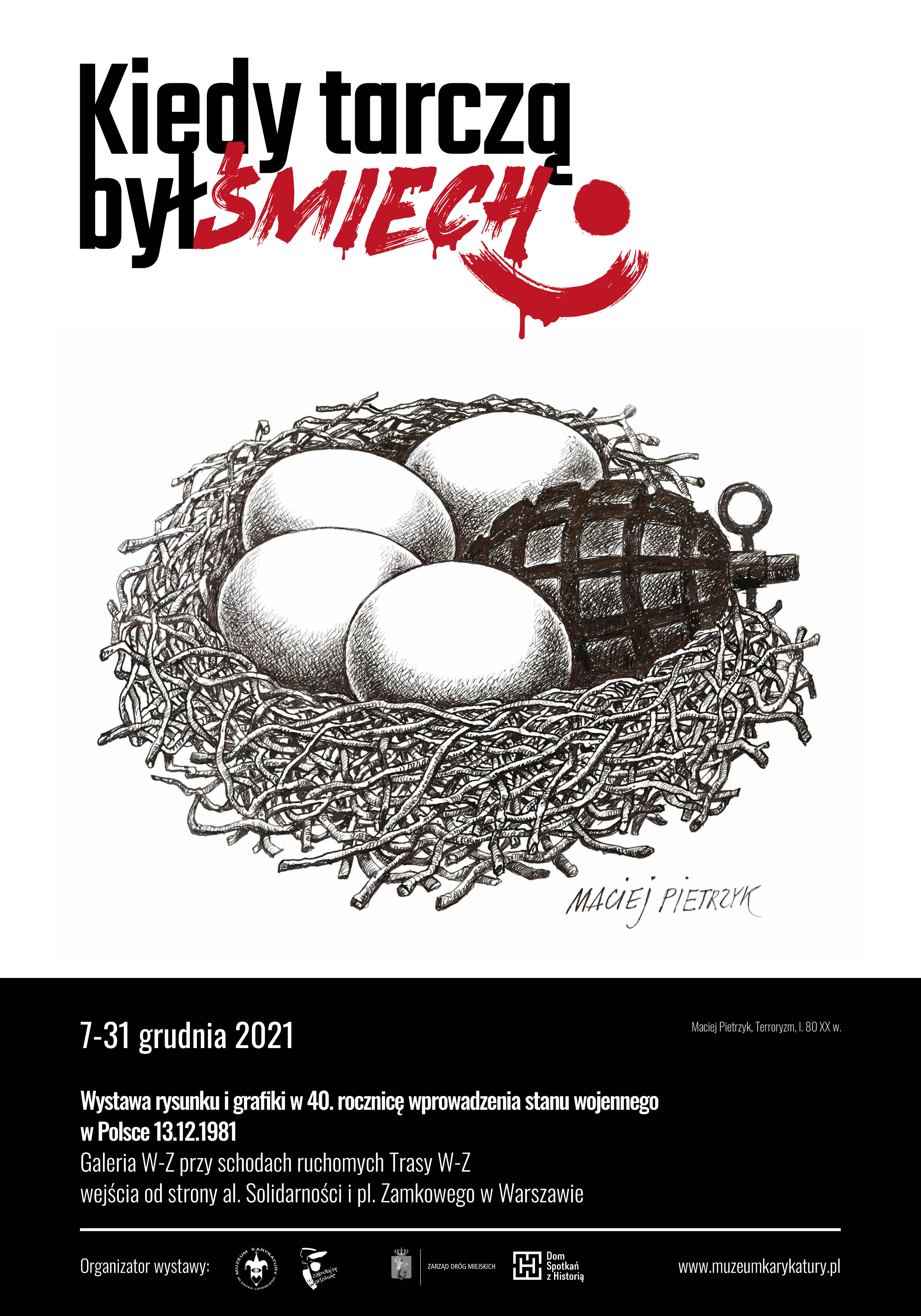 Wystawa prezentuje wybór kilkudziesięciu prac polskich rysowników i grafików ze zbiorów Muzeum Karykatury im. Eryka Lipińskiego oraz z kolekcji prywatnych rodziny Macieja Łukasiewicza, Jerzego Brukwickiego oraz artystów i została zorganizowana w ramach warszawskich obchodów rocznicy wprowadzenia stanu wojennego. Prezentacji towarzyszyć będzie 4-odcinkowa seria filmowa pt. „Opowieść noworoczna o rysunku”.