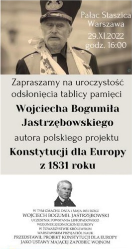W rocznicę wybuchu Powstania Listopadowego, 29 listopada 2022 r. przed Pomnikiem Mikołaja Kopernika w Warszawie, o godzinie 16:00 odbędzie się uroczystość umieszczenia tablicy informującej o polskim projekcie Konstytucji dla Europy z 1831 roku.