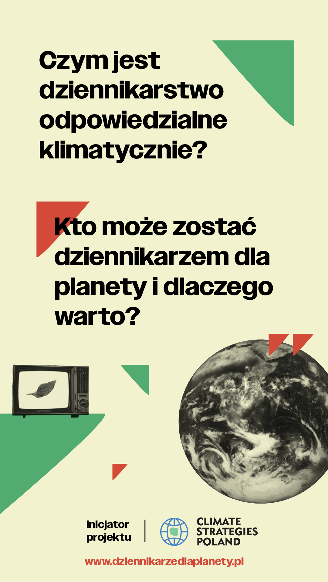 Dziennikarze i dziennikarki oraz twórcy internetowi odpowiedzialnie informujący na temat zmiany klimatu, konsekwentnie pogłębiający swoją wiedzę o klimacie zasługują na wsparcie i docenienie. Dlatego powstała strona www.dziennikarzedlaplanety.pl, prezentująca sylwetki, motywacje i pracę takich osób. Strona to niezależna od redakcji inicjatywa Fundacji Climate Strategies Poland.