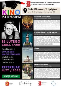 Kino za Rogiem” w sali kinowej Biblioteki Publicznej im. Stanisława Staszica na Bielanach przy ul. Romaszewskiego 19 zaprasza 15 lutego na spotkanie z krytykiem filmowym i teatralnym Łukaszem Maciejewskim, które towarzyszyć będzie projekcji filmu „Córka” w reżyserii Maggie Gyllenhaal. Początek imprezy o godz. 17.00. Wstęp wolny. Polska sekcja AICT/ Klub Krytyki Teatralnej Stowarzszenia Dziennikarzy Rzeczypospolitej Polskiej sprawuje patronat i dołącza się do zaproszenia.
